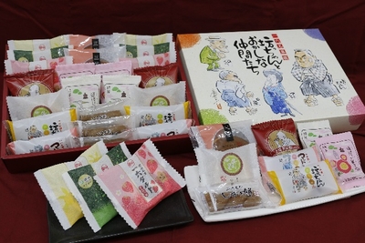 愛媛にちなんだお菓子はもちろん、四国産の素材を使ったお菓子など豊富な種類が入った通販限定お得な詰合せです。