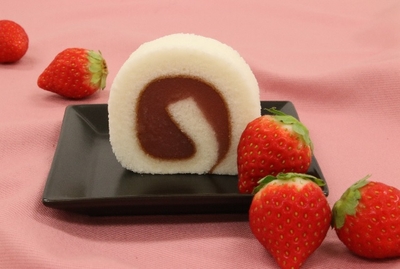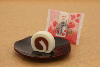 福岡県産あまおう苺のジャムを使用したいちご餡を白色のふんわりとした生地で巻いた、季節限定の一六タルトです。