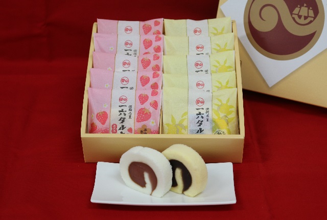 あまおう苺:白いんげん豆生餡(国内製造)、砂糖、加糖凍結全卵、小麦粉、いちごジャム、小豆生餡、水あめ、乳酸発酵卵白(卵白、粉あめ、果糖ぶどう糖液糖)、食塩、柚子果皮/トレハロース、膨張剤、糊料(増粘多糖類、加工でん粉)、酸味料、着色料(紅麹、クチナシ)、香料、(一部に卵・小麦・乳成分・大豆を含む)